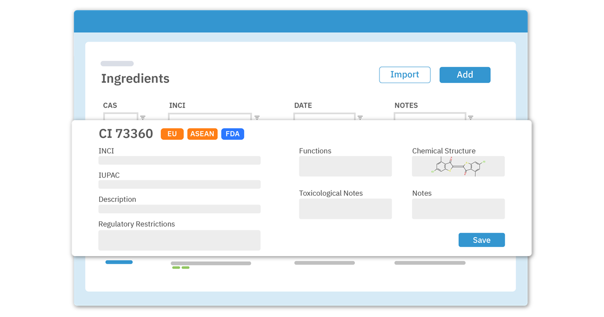 It offers a full-process approach concerning cosmetic regulatory compliance, from creating the toxicological profile of the ingredients that make up your cosmetic product to generating and maintaining regulatory documents according to the latest regulatory updates.